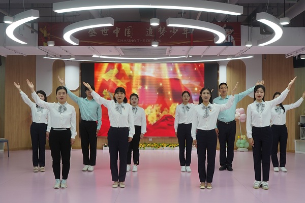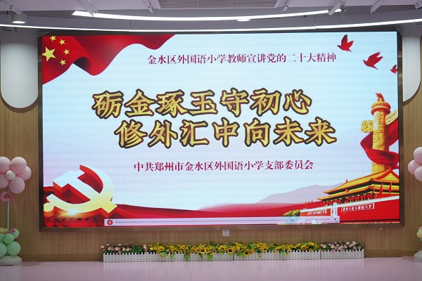 為傳承黨的革命精神,凝聚砥礪奮進的磅礴力量,6月30日上午,金水區(qū)外國語小學舉行慶祝中國共產(chǎn)黨成立102周年暨“七一”表彰大會。聲情并茂的詩朗誦《中國紅》拉開了表彰大會的帷幕。十位青年教師傾情演繹,字里行間傳遞著身為華夏兒女的自豪,舉手抬足之間表達著對黨的萬千祝福。