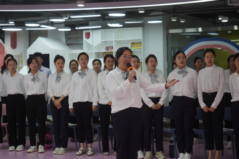 在三位音樂教師的引領下,全體教師合唱《打靶歸來》,重溫革命精神。為充分發(fā)揮名師的專業(yè)引領、帶動、輻射作用,進一步促進教師專業(yè)成長,學校隆重成立王淑君名師工作室和楊斐名師工作室。