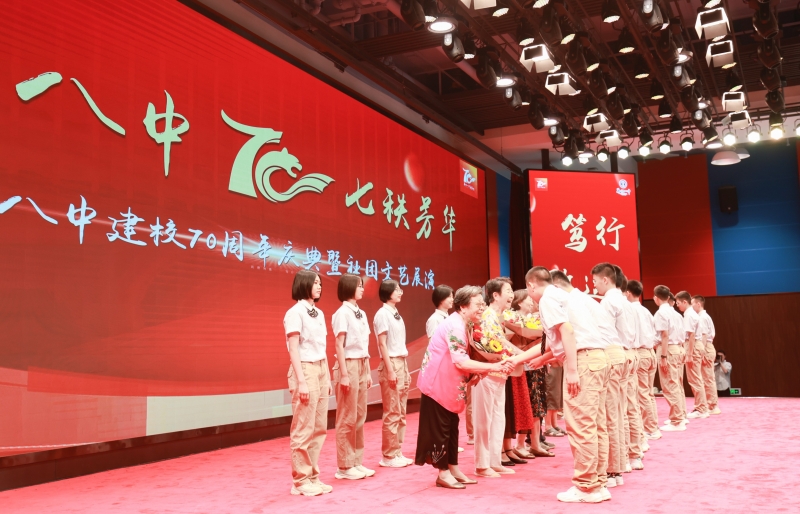 在鄭州八中70年發(fā)展的歷程中,一代代八中教師傳道授業(yè),立德樹人,培根鑄魂。他們從青春到白發(fā),奮戰(zhàn)在八中教育的第一線;他們“優(yōu)雅、謙遜、智慧、合作”,用自己的專業(yè)素養(yǎng)為國(guó)家育英才。鄭州八中的70年歷史,是八中教師心血的凝聚;鄭州八中的輝煌成就,有八中教師業(yè)績(jī)的輝映;鄭州八中的未來發(fā)展,離不開一代代八中人的奮力拼搏。在70年校慶之際,學(xué)生代表為離退休老教師獻(xiàn)上了鮮花,向老師們的艱辛付出與奉獻(xiàn)表示衷心的感謝。