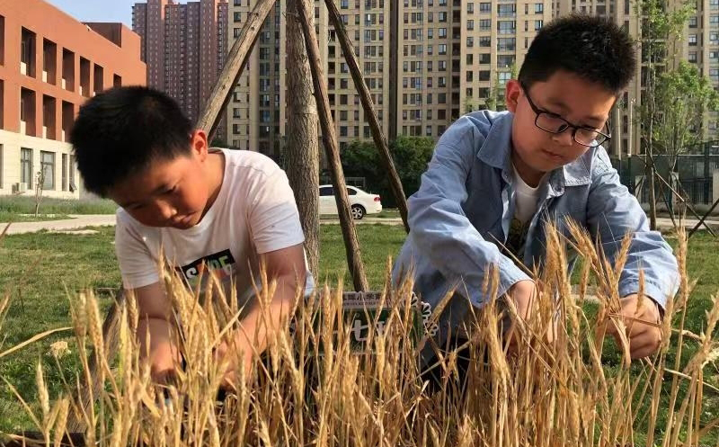 在校園“小農(nóng)場”,學(xué)生體驗收獲的快樂