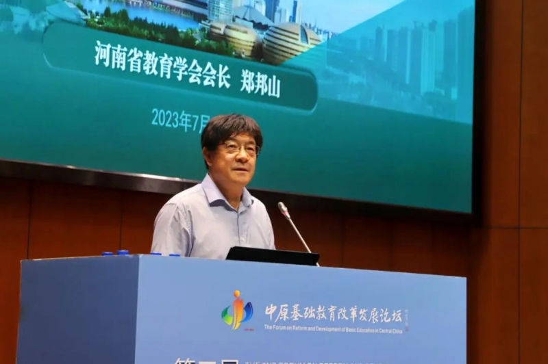 河南省政協(xié)委員聯(lián)絡(luò)委員會(huì)主任、河南省教育學(xué)會(huì)會(huì)長鄭邦山出席論壇開幕式并作主旨報(bào)告