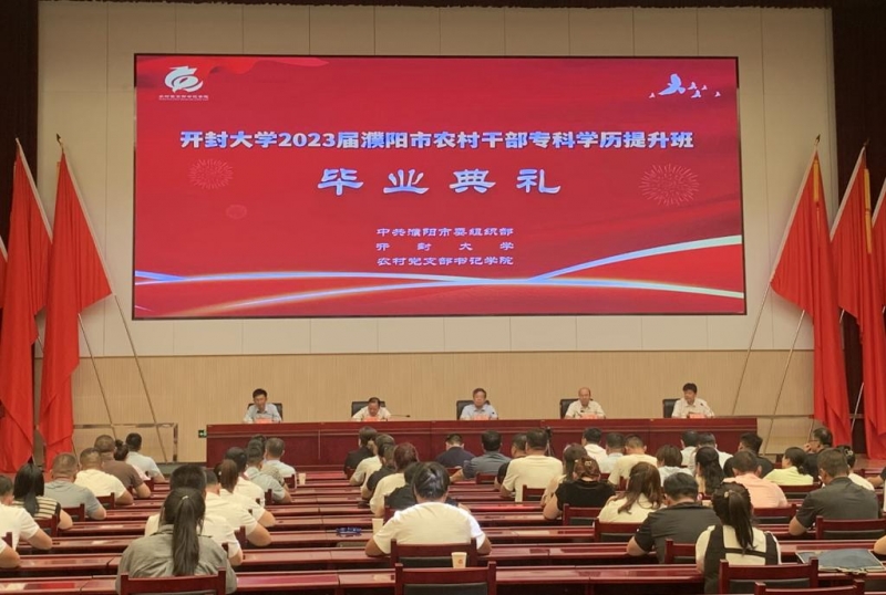 7月7日,開封大學(xué)2023屆“濮陽市農(nóng)村干部專科學(xué)歷教育提升班”畢業(yè)典禮在濮陽市農(nóng)村黨支部書記學(xué)院大禮堂舉行,校黨委副書記、校長宋曉煒,濮陽市委組織部副部長、農(nóng)村黨支部書記學(xué)院黨委副書記、主持日常工作的副院長郭炳申,校黨委委員、開封衛(wèi)校黨委書記曾小平,農(nóng)村黨支部書記學(xué)院黨委委員、副院長王鑫出席典禮。濮陽市各縣(區(qū))組織部門分管副部(局)長、2023屆畢業(yè)生、2022級學(xué)員參加會議。典禮由濮陽市委副縣級巡察專員方巖俊主持。