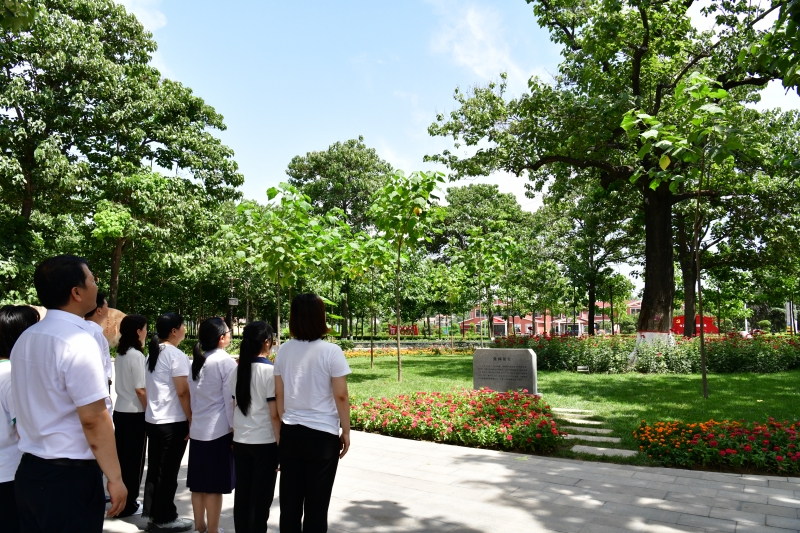 來到焦桐廣場,瞻仰60年前焦裕祿同志親手栽下的泡桐,小小的樹苗已成參天大樹,昔日黃沙漫天苦難縣已成為人人幸福的富裕縣,在焦裕祿精神引領下,蘭考一代代黨員干部埋頭苦干、接力奮斗,不斷續(xù)寫改天換地、日新月異的精彩篇章,走上了一條快速發(fā)展、充滿希望的幸福之路。黨員同志在泡桐樹下齊聲朗誦習近平總書記親自撰寫的《念奴嬌·追思焦裕祿》,以此激勵黨員教師學好、用好焦裕祿精神,深學、細照、篤行,努力做焦裕祿式的好黨員、好干部,自覺踐行為人民服務的宗旨,不忘教育初心,牢記教師使命。