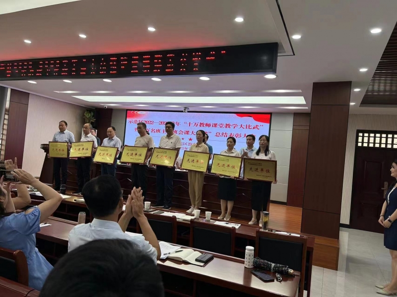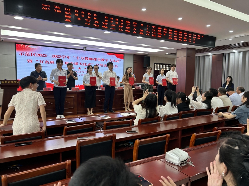 7月19日,南陽市示范區(qū)教育中心隆重舉行2022—2023學(xué)年“十萬教師課堂教學(xué)大比武”“萬名班主任班會課大比武”總結(jié)表彰活動。南陽市示范區(qū)教育中心全體班子成員,各科室負責(zé)人,基礎(chǔ)教育科全體同志,全區(qū)中小學(xué)校長、業(yè)務(wù)校長,大比武先進集體和先進個人代表參加了會議。
