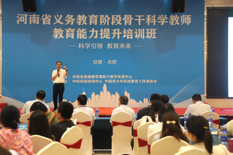 8月13日—19日,河南省義務(wù)教育階段骨干科學(xué)教師教育能力提升培訓(xùn)班在安徽省合肥市成功舉辦,來自我省的300名中小學(xué)科學(xué)教師參加培訓(xùn)。中國(guó)科學(xué)技術(shù)大學(xué)、中國(guó)科學(xué)院院士楊金龍,省教育廳總督學(xué)劉林亞、省基礎(chǔ)教育課程與教學(xué)發(fā)展中心主任李海龍,中國(guó)青少年科技教育工作者協(xié)會(huì)、中科科技培訓(xùn)中心相關(guān)負(fù)責(zé)同志出席開班式暨開班第一課。