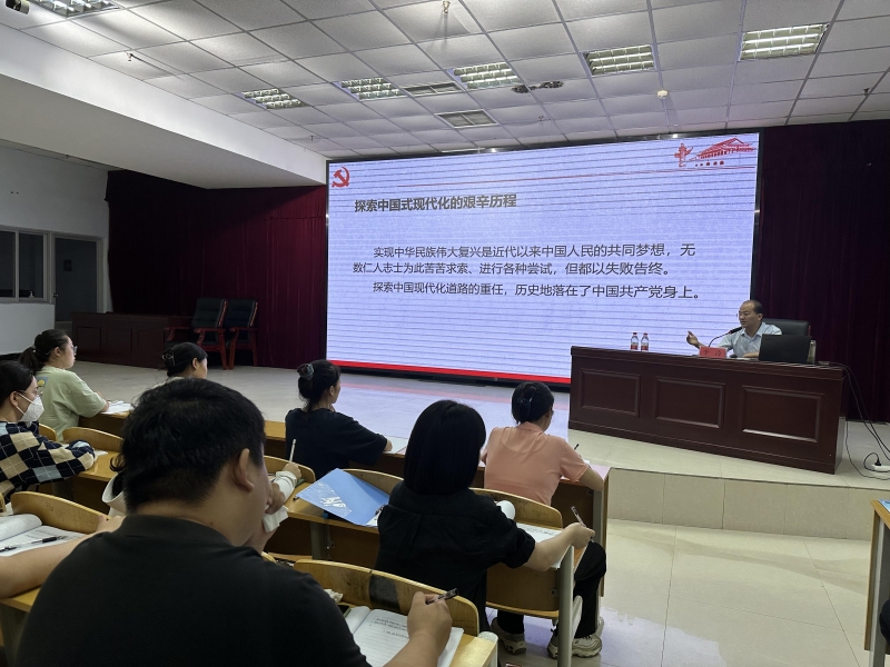 當天下午,學院邀請中共河南省委黨校科學社會主義教研部主任、副教授、政治學博士李濤,為全體教師開展《以中國式現(xiàn)代化全面推進中華民族偉大復興》專題講座。李主任用娓娓道來的語言為大家呈現(xiàn)出中國近現(xiàn)代發(fā)展變遷的畫面,讓教職工深刻理解了中國式現(xiàn)代化的艱辛探索歷程和重大意義,只有矢志不渝以黨的宗旨、信念為指引,自覺把個人成才、進步發(fā)展融入黨的教育事業(yè),用中國式現(xiàn)代化全力推進全面實現(xiàn)教育現(xiàn)代化,才能在傳承中守正創(chuàng)新,堅定理想信念。
