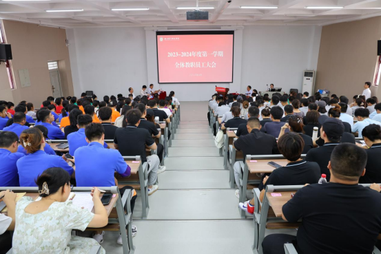 未覺(jué)夏暑盡,時(shí)序已新秋。新學(xué)期如約而至,為確保各項(xiàng)工作快速步入正軌,8月25日,鄭州體育職業(yè)學(xué)院在一號(hào)階梯教室召開(kāi)2023-2024-1學(xué)期全體教職員工大會(huì)。理事長(zhǎng)孟凡葉,校黨委書(shū)記陳英利,校黨委副書(shū)記、校長(zhǎng)關(guān)學(xué)增,校黨委副書(shū)記王曉慧,主管學(xué)生工作副院長(zhǎng)王俊卿出席會(huì)議。各院系、處室負(fù)責(zé)人及全體教職員工參加會(huì)議。會(huì)議由校黨委副書(shū)記王曉慧主持。