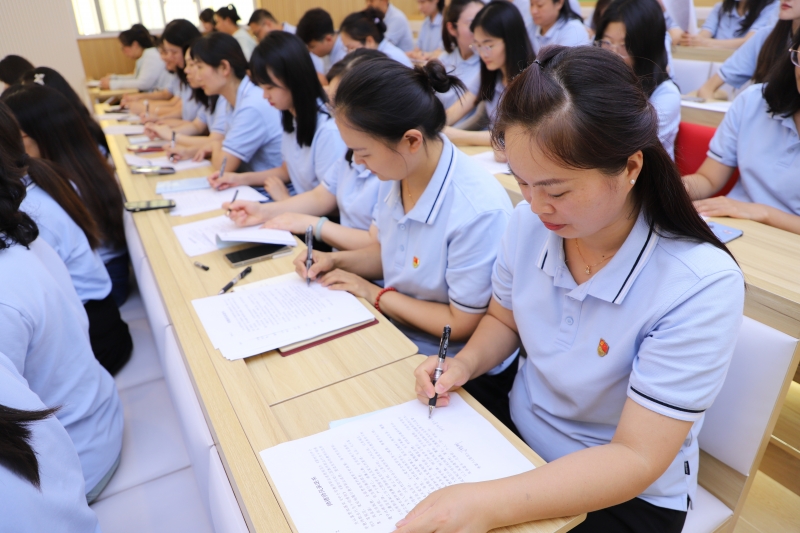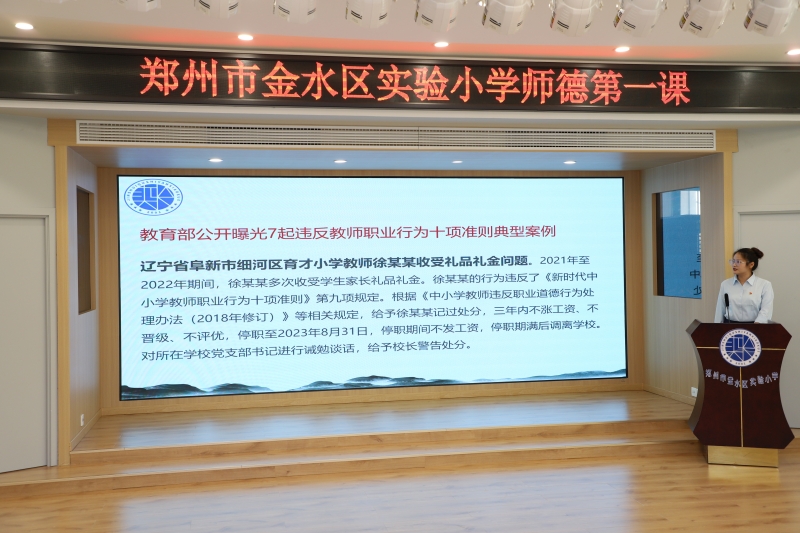 為深入學(xué)習(xí)貫徹習(xí)近平總書記關(guān)于教育的重要論述,激勵全體教師不忘初心,立德樹人,厚植愛國情懷,把思想政治與師德師風(fēng)建設(shè)擺在教師隊伍建設(shè)的首要位置,通過塑造教師共同價值追求,激勵教師成為學(xué)生為學(xué)、為事、為人的“大先生”。8月28日,金水區(qū)實驗小學(xué)教育集團開展了新學(xué)期“師德第一課”集中教育活動。黨支部書記、校長羅祎璠和德育主任張麗娟分別帶領(lǐng)兩個校區(qū)的老師學(xué)習(xí)《鄭州市中小學(xué)教師違反職業(yè)道德行為處理實施細(xì)則(試行)》,強調(diào)全體教師要深以貫徹二十大精神,牢記為黨育人、為國育才的初心使命。一紙誓約,一份承諾,全體教師簽訂《師德師風(fēng)承諾書》,承諾依法執(zhí)教,堅定育人信念。