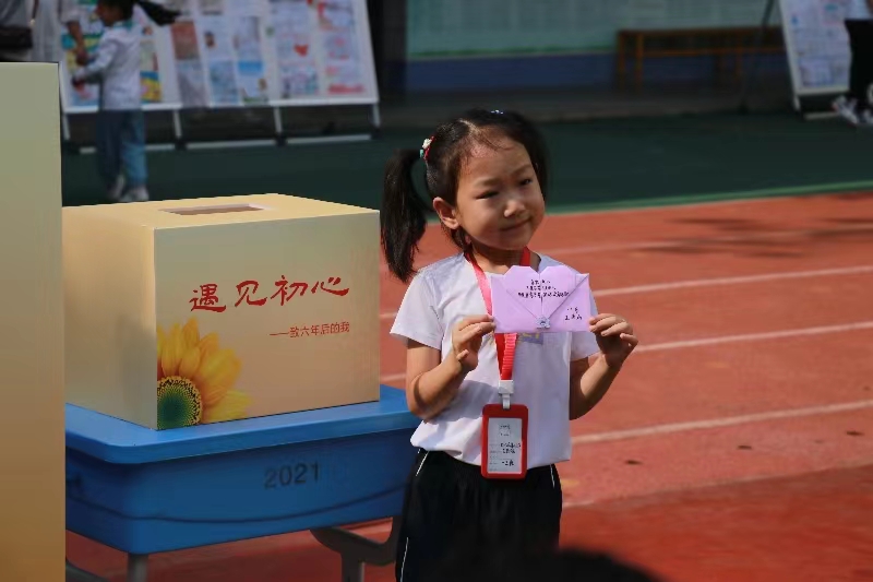 孩子們在爸爸媽媽的幫助下,寫好了“遇見初心——致六年后的我”這封信,并認(rèn)認(rèn)真真投遞進(jìn)班級信箱。一封封色彩艷麗、制作精美的信承載著父母的期望、孩子們的夢想,此刻,小小少年們踏上夢想之路,開始啟航!