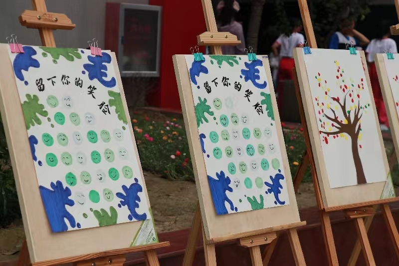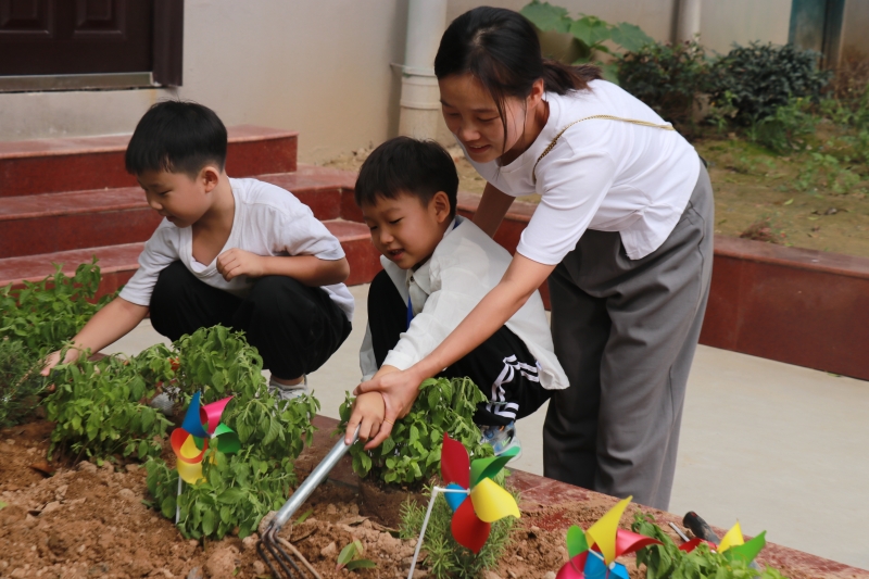 孩子們用稚嫩的小手,在班級樹上按上指印,寫上自己的姓名,五彩斑斕的指紋圖案形成一幅幅代表自己班級的指紋樹,每一棵大樹象征著一個班級大集體,別具一格,孩子們用手指描繪著七彩童年。老師們將學(xué)生與家長帶至耕種園,大家認(rèn)真播種,并插上彩色風(fēng)車。