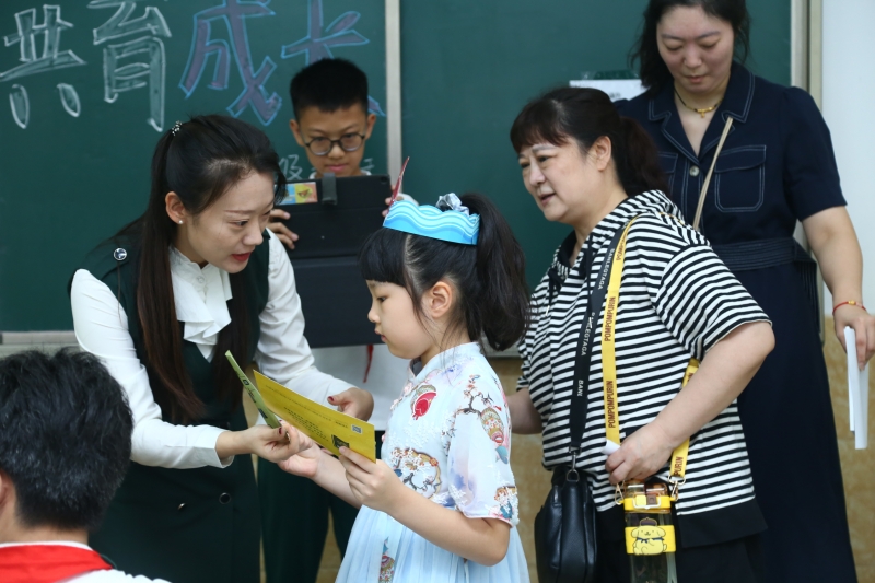 走進(jìn)教室,老師親自為新同學(xué)戴上小水滴頭飾,并給他們發(fā)放入學(xué)的第一份禮物——通知書。“媽媽你看,我拿到通知書啦!我是一名小學(xué)生啦!”一年級的一名學(xué)生迫不及待地分享自己的喜悅,掩飾不住自豪和激動(dòng)。教室里,等待孩子們的還有“文源小使者”。大手拉小手,彼此親切的問候,讓這份溫暖和力量從指尖開始,從“新”傳承。新生們接過游園卡,“文源小使者”帶領(lǐng)他們打卡文源小學(xué)校園,介紹校園生活的點(diǎn)點(diǎn)滴滴。