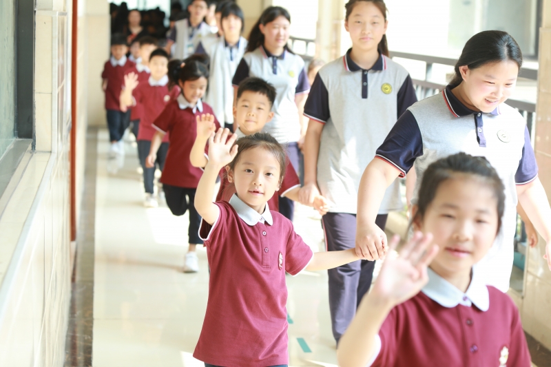 “弟弟妹妹,別怕迷路,我?guī)懔私庑@!”鄭州市第三十四中學(xué)的初一學(xué)子和緯五路第二小學(xué)明鴻校區(qū)四年級(jí)的學(xué)生化身“小小禮儀員”,大手拉小手,帶領(lǐng)充滿好奇與期待的孩子們熟悉新學(xué)校。