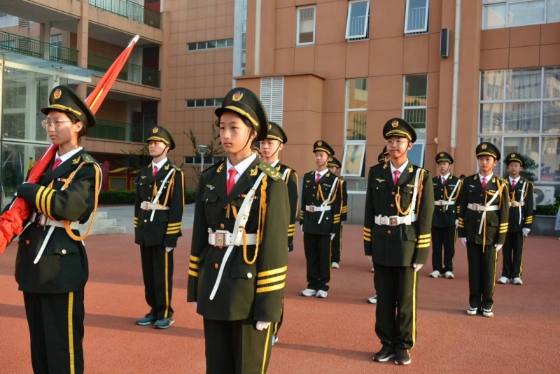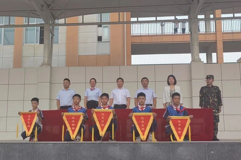 伴著激昂的國歌,國旗在護旗隊手中徐徐升起,結(jié)營儀式正式拉開序幕。整齊劃一的步伐,堅定嘹亮的口號,展現(xiàn)著南陽市實驗學(xué)校新生們的勃勃英姿。立正,敬禮,停止間轉(zhuǎn)法,動作堅定有力。