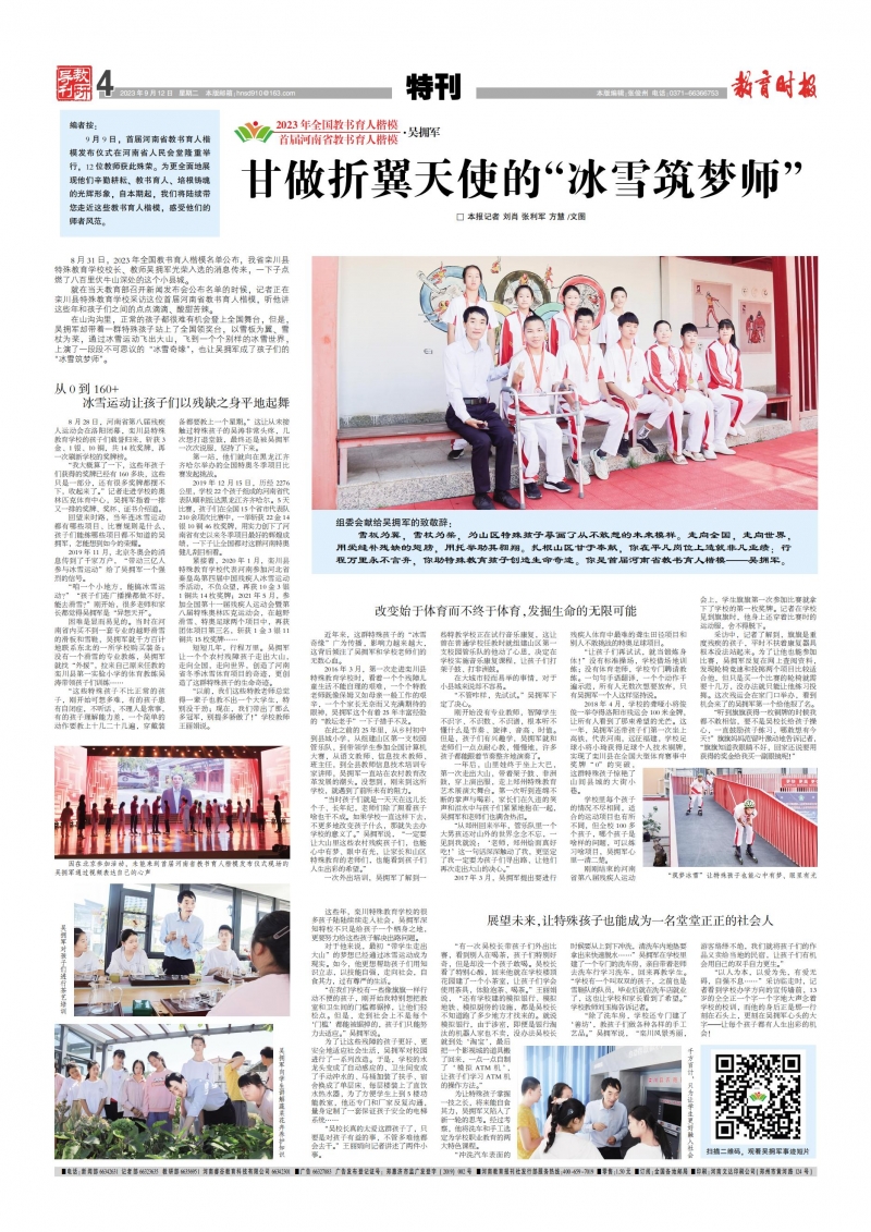 短短幾年,行程萬里。吳擁軍讓一個個農(nóng)村殘障孩子走出大山,走向全國,走向世界,創(chuàng)造了河南省冬季冰雪體育項目的奇跡,更創(chuàng)造了這群特殊孩子的生命奇跡。