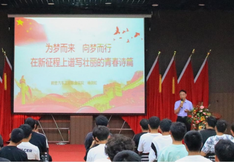 為全面貫徹落實立德樹人的根本任務(wù),深入推進習(xí)近平新時代中國特色社會主義思想進教材進課堂進頭腦,充分發(fā)揮黨委書記在思想政治教育工作中的示范引領(lǐng)作用,幫助廣大青年學(xué)生扣好人生第一粒扣子。9月12日上午,鶴壁汽車工程職業(yè)學(xué)院黨委書記楊劍虹教授為23級新能源班級學(xué)生講授思政大課。