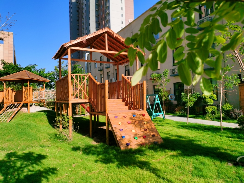 在園所中,有一個特別之處是其他很多幼兒園看不到的特別之處——竹木結構滿眼可見。你可不要小看了這些竹木結構,因為竹木一直代表了正直、堅韌、慈愛、智慧。宋朝釋元肇寫過“云從根上起,玉向實中藏。為雨從龍后,清風滿菊堂。”清鄭板橋寫過“咬定青山不放松,立根原在破巖中。千磨萬擊還堅勁,任爾東西南北風。” 竹木書香入心,教化天生;自然萬物入心,慈愛溫情。