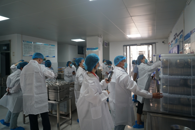 首先,在學校食堂管理人員的帶領下,家委會成員走進學校食堂,零距離參觀了學校食堂的操作間、儲藏間、洗菜區(qū)、分餐間等區(qū)域,詳細了解食堂操作的各個環(huán)節(jié)。完善的設備、干凈整潔的操作臺、新鮮的食材讓家長們對學校食堂有了更為直觀的了解。