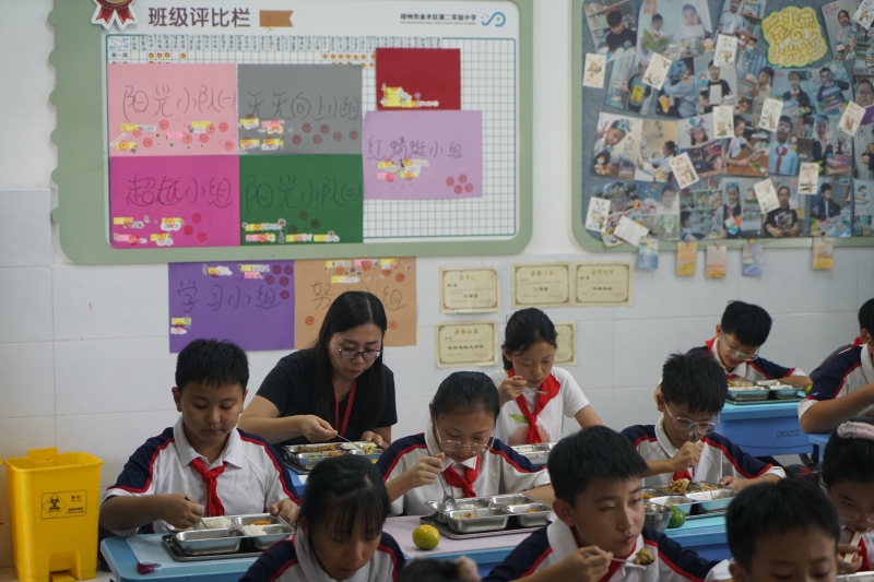 最后,家委會代表和學校相關領導走進學校教室,與孩子們一起共享美好“食”光,代表們對學校為學生們打造的“舌尖上的美味”表示滿意。