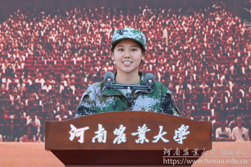 河南農(nóng)業(yè)大學(xué)風(fēng)景園林與藝術(shù)學(xué)院23級學(xué)生楊一佳作為參訓(xùn)學(xué)生代表發(fā)言,在軍訓(xùn)過程中服從教官命令,團結(jié)同學(xué),增強班級榮譽感,保持積極心態(tài),享受苦與樂,認真完成軍訓(xùn)任務(wù)。