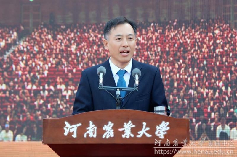 他指出,自1902年創(chuàng)辦河南大學(xué)堂以來,河南農(nóng)業(yè)大學(xué)作為河南近現(xiàn)代高等教育的開端,雖數(shù)易校名、幾度流離,但“厚生豐民”的辦學(xué)宗旨不曾改,“一人衣食不足皆為農(nóng)科不盡職”的鏗鏘誓言未敢忘。學(xué)校始終秉承“厚生豐民”的辦學(xué)宗旨,從上世紀(jì)50年代吳紹骙教授首創(chuàng)南繁北育異地培育理論和實踐,70年代范濂、胡廷積教授牽頭成立“河南省小麥高穩(wěn)優(yōu)低研究推廣協(xié)作組”,到學(xué)校自“九五”以來連續(xù)主持“國家糧豐工程”,推動河南糧食生產(chǎn)的“三大跨越”,再到“全國每四個饅頭就有一個是河南產(chǎn)”的全面豐收。一代代農(nóng)大人扎根大地,為解決河南人民溫飽問題,保障國家糧食安全殫精竭慮、奮斗不息。進入二十一世紀(jì),學(xué)校發(fā)展走上了快車道,今年5月,河南省人民政府正式發(fā)文,支持河南農(nóng)業(yè)大學(xué)創(chuàng)建中國特色世界一流農(nóng)業(yè)大學(xué),農(nóng)大改革創(chuàng)新、銳意進取、奮楫篤行的精氣神始終如一。
