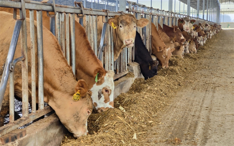 柘城縣是河南省養(yǎng)牛大縣、培育縣,被譽(yù)為“中國肉牛之鄉(xiāng)”。在柘城縣蓮?fù)翗I(yè)有限公司和河南省萬犇牧業(yè)有限公司,記者一行實(shí)地走進(jìn)牛棚,參觀惠濟(jì)鄉(xiāng)現(xiàn)代農(nóng)業(yè)產(chǎn)業(yè)園。據(jù)了解,該園區(qū)一期肉牛繁育基地占地220余畝,總投資2.5億元,已建成養(yǎng)殖棚30座,自動(dòng)化機(jī)械12臺(tái),現(xiàn)有母牛12000余頭,是全省最大母牛繁育基地。