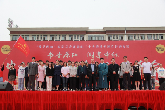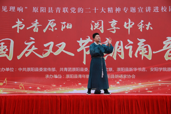 為深入學(xué)習(xí)貫徹黨的二十大精神,進(jìn)一步推進(jìn)全民閱讀,讓書(shū)香進(jìn)校園,建設(shè)書(shū)香原陽(yáng),9月26日上午,安陽(yáng)學(xué)院原陽(yáng)校區(qū)聯(lián)合中共原陽(yáng)縣委宣傳部、共青團(tuán)原陽(yáng)縣委、原陽(yáng)縣文聯(lián)、原陽(yáng)縣新華書(shū)店開(kāi)展“書(shū)香原陽(yáng) 閱享中秋”中秋國(guó)慶雙節(jié)朗誦音樂(lè)會(huì)。