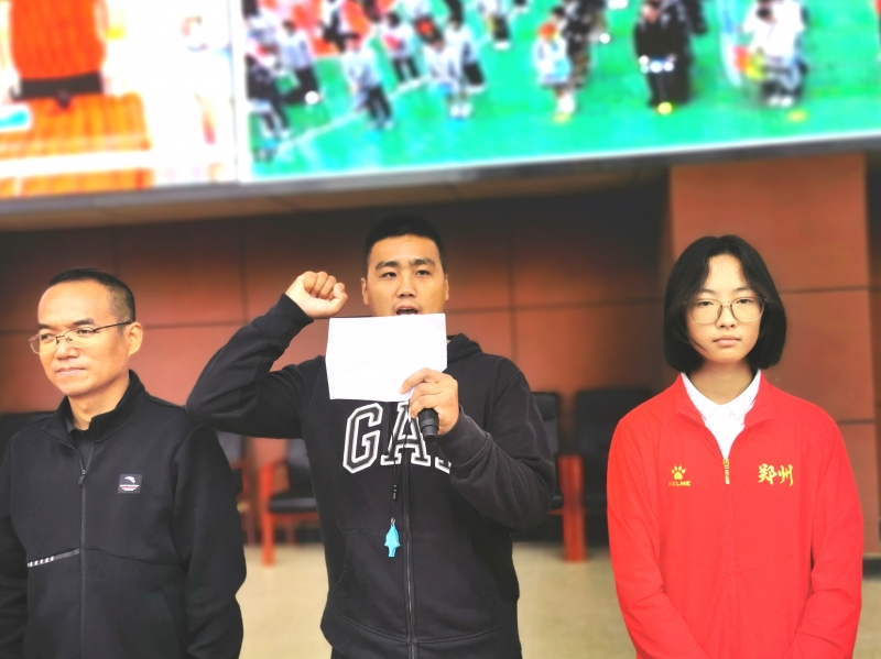 2024屆博雅2班袁小雯、體育教師王賀分別代表運(yùn)動(dòng)員和裁判員鄭重宣誓,政教處主任甘鐵權(quán)宣讀運(yùn)動(dòng)會(huì)比賽紀(jì)律要求。最后,劉莘宣布鄭州八中“迎國(guó)慶 秋實(shí)杯”秋季田徑運(yùn)動(dòng)會(huì)正式開(kāi)幕。
