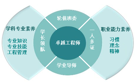 基于職業(yè)能力模型,建立了以卓越工程師培養(yǎng)為主體,以學(xué)科專業(yè)素養(yǎng)、職業(yè)能力素養(yǎng)為兩翼,以輪值班委、一人多證、學(xué)業(yè)導(dǎo)師和學(xué)長領(lǐng)航計劃為驅(qū)動的“一體兩翼,四維驅(qū)動”就業(yè)能力提升體系,不斷提升學(xué)生的就業(yè)競爭力。