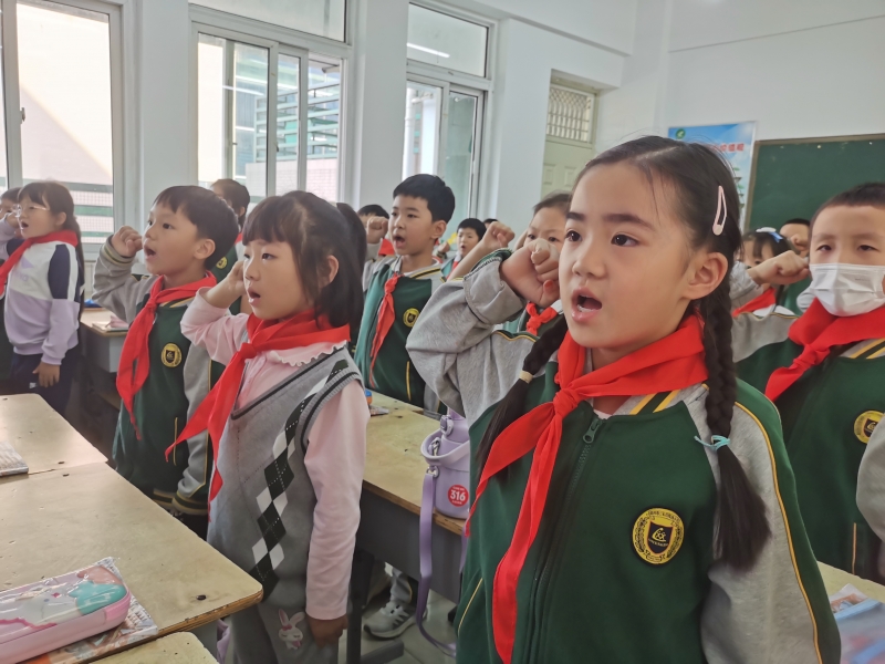 “我是中國少年先鋒隊隊員,我在隊旗下宣誓:熱愛中國共產(chǎn)黨,熱愛祖國,熱愛人民,好好學(xué)習(xí),好好勞動,準(zhǔn)備著為共產(chǎn)主義事業(yè)貢獻力量!”新隊員鏗鏘的誓言回蕩在整個校園。紅領(lǐng)巾代表了五星紅旗的一角,是無數(shù)革命先烈用鮮血染紅的。戴上紅領(lǐng)巾后,隴西小學(xué)教育集團的隊員們不僅多了一分自豪、一分責(zé)任,還定將用美好的行動為紅領(lǐng)巾增添光彩。