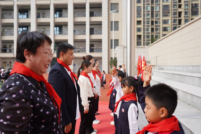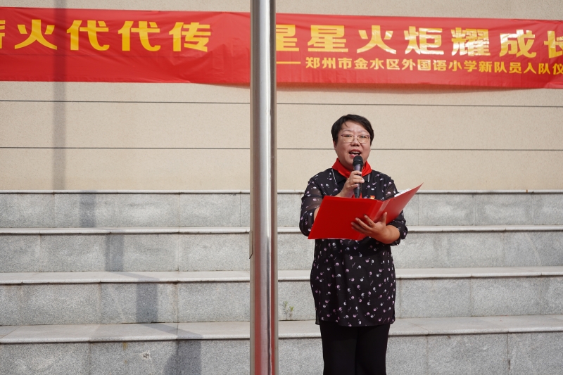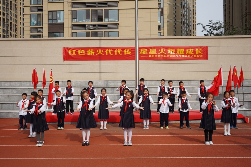 為深入學(xué)習(xí)貫徹黨的二十大精神、激發(fā)新隊(duì)員的使命感和光榮感,2023年10月12日下午鄭州市金水區(qū)外國(guó)語小學(xué)舉行了“紅色薪火代代傳 星星火炬耀成長(zhǎng)”新隊(duì)員入隊(duì)儀式。