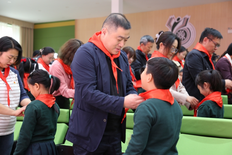 金水區(qū)文源小學(xué)黨支部書(shū)記、校長(zhǎng)黃延穎寄語(yǔ)新隊(duì)員。希望他們從小樹(shù)立遠(yuǎn)大的理想,養(yǎng)成優(yōu)良的品德,培養(yǎng)過(guò)硬的本領(lǐng)。希望他們?cè)诶蠋熀桶职謰寢尩墓餐亲o(hù)下,健康快樂(lè)的成長(zhǎng),早日為中華民族的偉大復(fù)興貢獻(xiàn)力量。