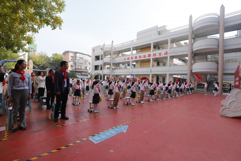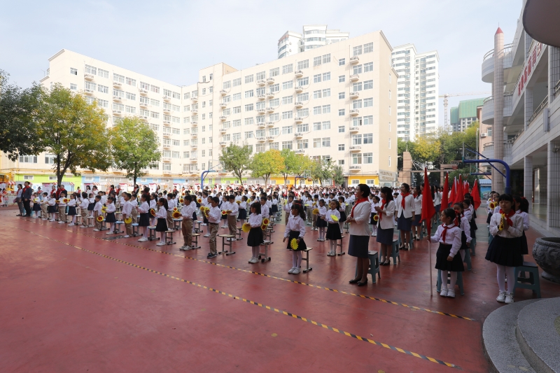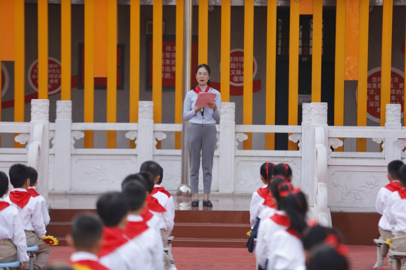 10月13日上午,鄭州市金水區(qū)經(jīng)三路小學隆重舉行“三樂少年心向黨 領(lǐng)巾飄揚做先鋒”新隊員入隊儀式,慶祝中國少年先鋒隊建隊74周年。金水區(qū)高招辦主任曹鵬舉、共青團金水區(qū)委副書記沈季惠,金水區(qū)教育局教育科科長杜菁,金水區(qū)少先隊大隊總輔導(dǎo)員孔臻祎,金水區(qū)少先隊工作服務(wù)中心主任鄧銳方參加活動,全區(qū)100余名輔導(dǎo)員參與了觀摩。