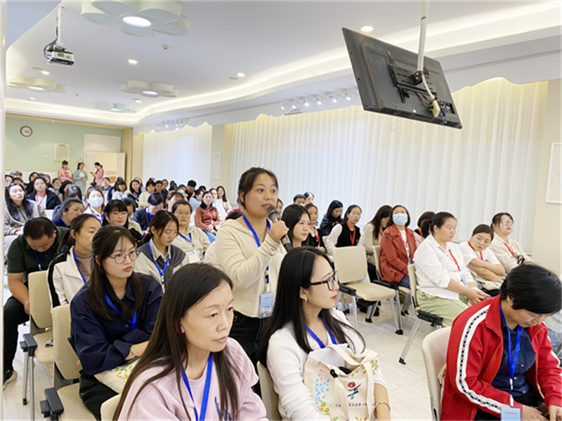 在音體室,現(xiàn)場觀摩寇婭婷老師執(zhí)教的小班滴流畫《七彩下雨天》和熊仙景老師執(zhí)教的小班數(shù)學(xué)活動(dòng)《小熊旅行記》,兩位教師的教學(xué)形式靈活多樣,操作材料豐富多彩,教學(xué)語言充滿童趣,充分調(diào)動(dòng)了幼兒的積極性。教研環(huán)節(jié),學(xué)員們紛紛表示幼兒在活動(dòng)中表現(xiàn)出濃厚的興趣,真正做到了師幼互動(dòng)、幼幼互動(dòng),讓孩子能夠在輕松愉悅的氛圍中獲取知識體驗(yàn)和審美提升。