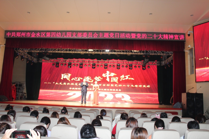 為進(jìn)一步學(xué)習(xí)和貫徹黨的二十大精神,弘揚(yáng)紅色革命精神,加強(qiáng)中華優(yōu)秀傳統(tǒng)文化的傳承與發(fā)展,10月20日,鄭州市金水區(qū)第四幼兒園黨支部開展了“同心逐夢(mèng)中國(guó)紅 立足崗位做貢獻(xiàn)”主題黨日暨黨的二十大精神宣講活動(dòng)。