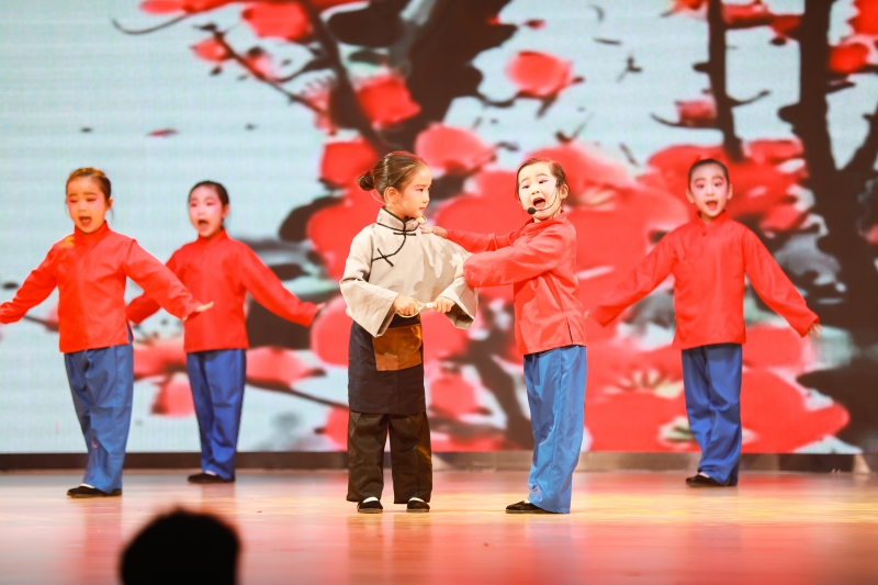 由教師和家長(zhǎng)帶來的樂器聯(lián)奏《中國(guó)紅》塑造了大無畏的精神和戰(zhàn)勝一切困難的英雄氣概,表達(dá)了中國(guó)人民拼搏堅(jiān)韌、勇往直前、精忠報(bào)國(guó)的精神。情景表演《品味中華 古風(fēng)國(guó)韻》一幕幕情景講述中醫(yī)藥故事,感受中華傳統(tǒng)非遺文化絨花的魅力,每一個(gè)孩子都能找到自己的閃光點(diǎn)。幼兒戲曲《鍘刀下的紅梅》小演員們自信滿滿地走上舞臺(tái)中央,個(gè)個(gè)姿態(tài)怡然,在節(jié)目中演繹劉胡蘭的剛?cè)岵?jì)和責(zé)任擔(dān)當(dāng),她用行動(dòng)踐行著入黨時(shí)的初心和誓言,用勇氣和智慧作出榜樣和表率。自信的笑容、夸張的表情、神氣的動(dòng)作不僅吸引了在場(chǎng)所有的小朋友,更讓臺(tái)下的觀眾們贊嘆不已。
