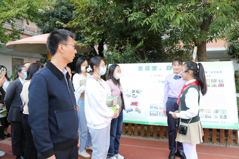 2023年10月20日下午,金水區(qū)黃河路第二小學(xué)組織了課后服務(wù)開放日活動。金水區(qū)教育局教育科科長杜菁、金西南學(xué)區(qū)各校相關(guān)負(fù)責(zé)人和學(xué)校94名家長走進(jìn)校園,參觀學(xué)校課后服務(wù)開展情況。