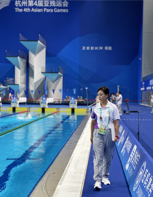開封市小學教師張巖作為游泳項目的技術(shù)官員,作為河南省唯一一名該項目裁判出現(xiàn)在亞殘運會賽場,憑借出色的專業(yè)技能完成了從小學體育教師到國際賽事裁判的華麗變身。