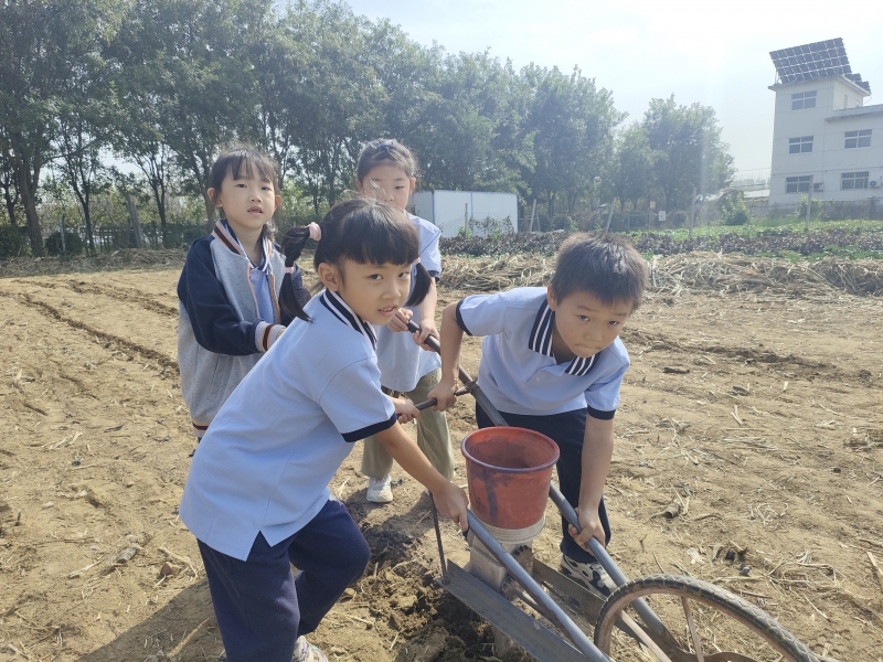 隆重的開營儀式上,傳班旗、授校旗,孩子們感受到十足的儀式感。學(xué)校黨支部副書記藏麗為此次研學(xué)活動致辭。隆重的儀式后,農(nóng)學(xué)基地教官與孩子們一起舞動童年,帶領(lǐng)學(xué)生活躍氣氛與熱身。熱身過后,熱情高漲的孩子們跟隨教官一起來到小菜園。這里各式各樣的新鮮蔬菜郁郁蔥蔥,孩子們彎下腰認(rèn)真學(xué)習(xí)和辨認(rèn),在與老師教官的談?wù)撝姓J(rèn)識蔬菜、了解蔬菜;在老師的指導(dǎo)下,親手擇菜、洗菜、認(rèn)識炊具,學(xué)習(xí)烹飪技能。在研學(xué)基地,孩子們還見到了犁、耙、石磨等傳統(tǒng)的勞動工具。在教官的指導(dǎo)下,孩子們躍躍欲試,爭相體驗(yàn),拉犁、耙地、推磨,豆大的汗珠掛在臉上,孩子們體會到農(nóng)民伯伯的不易,紛紛背起古詩:誰知盤中餐,粒粒皆辛苦,不知不覺愛糧節(jié)糧的種子已在孩子們心中埋下。