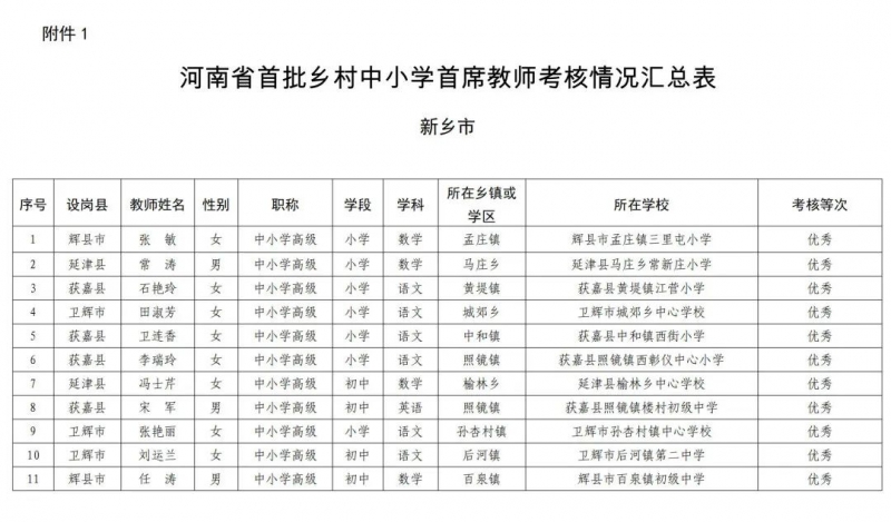 附件:1.河南省首批鄉(xiāng)村中小學(xué)首席教師考核情況匯總表