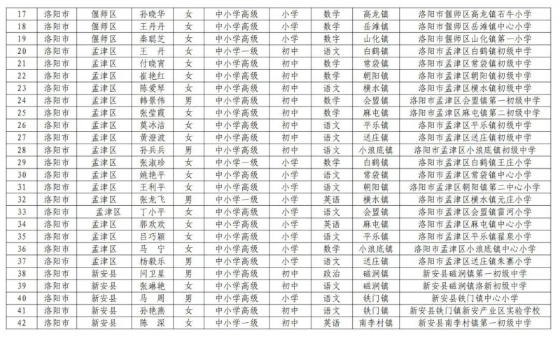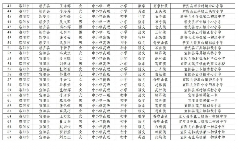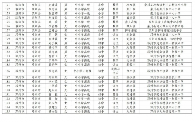 2.河南省第二批鄉(xiāng)村中小學(xué)首席教師崗位計(jì)劃補(bǔ)充聘任人選信息表