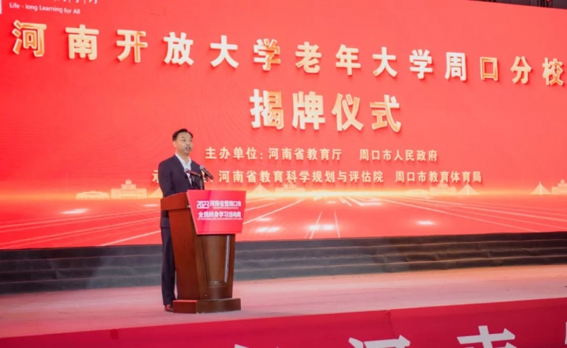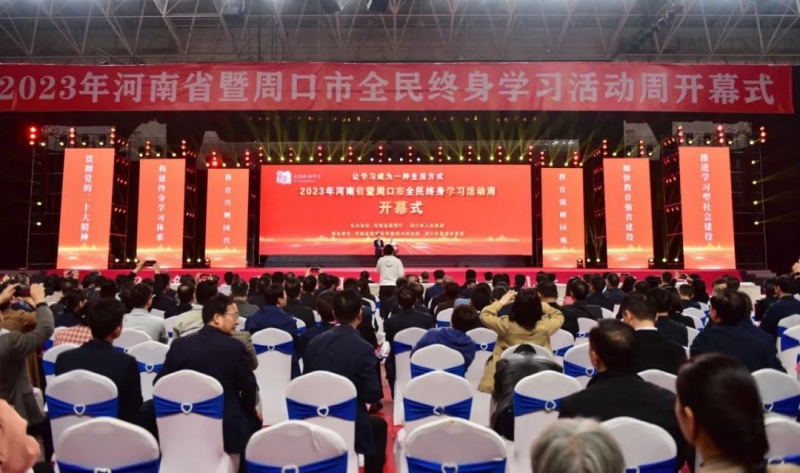 11月4日,由河南省教育廳、周口市人民政府主辦的2023年河南省暨周口市全民終身學(xué)習(xí)活動(dòng)周在周口市體育中心開(kāi)幕。河南省教育廳黨組成員、副廳長(zhǎng)朱自鋒,周口市人民政府副市長(zhǎng)秦勝軍,平頂山市人民政府副市長(zhǎng)史曉天,河南開(kāi)放大學(xué)校長(zhǎng)孫斌等出席開(kāi)幕式。