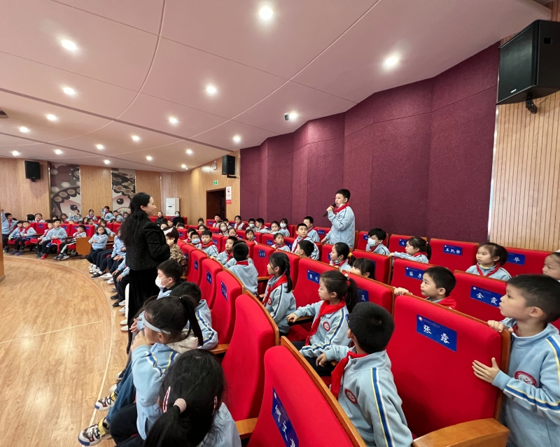 科學老師陳思雨向同學們介紹了《博士團講科普》圖書漂流活動的具體安排。本次圖書漂流面向全校學生,以班級為單位,以周為時長,“課堂+課外”同步閱讀的方式,由年級科學老師負責組織開展。一二年級以“視頻學習+親子閱讀”為主,三四年級以“自主閱讀+親子實踐”為主,五六年級以“自主閱讀+自主實踐”為主,分階段分層次進行。