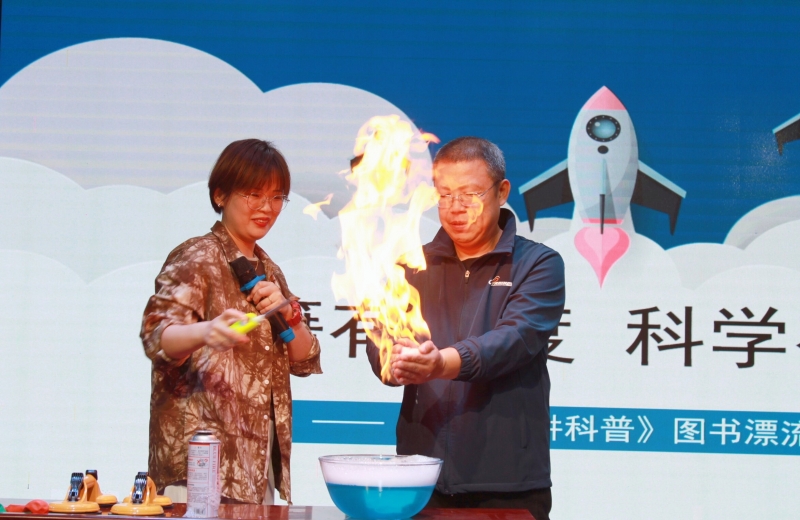 圖書漂流啟動儀式共分六個環(huán)節(jié)。首先,三一班的李菀彧同學作為學生代表上臺進行演講。她認為書籍是心靈的滋養(yǎng),科學是認識世界、改造世界的工具,閱讀科普書籍可以幫助大家增長智慧,為創(chuàng)造美好明天提供動力。二六班學生家長禹曄作為特邀嘉賓進行發(fā)言,并帶來科學魔法課。學生們見證了“伯努利效應實驗”、“氦氣變聲實驗”、“馬德堡半球實驗”、“丁烷燃燒實驗“等奇妙實驗現(xiàn)象的發(fā)生。一雙雙聚精會神的眼睛,一張張興奮的笑臉,完全點燃了學生們學習科學的熱情。