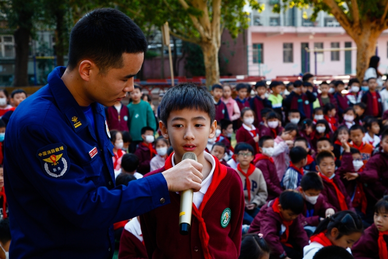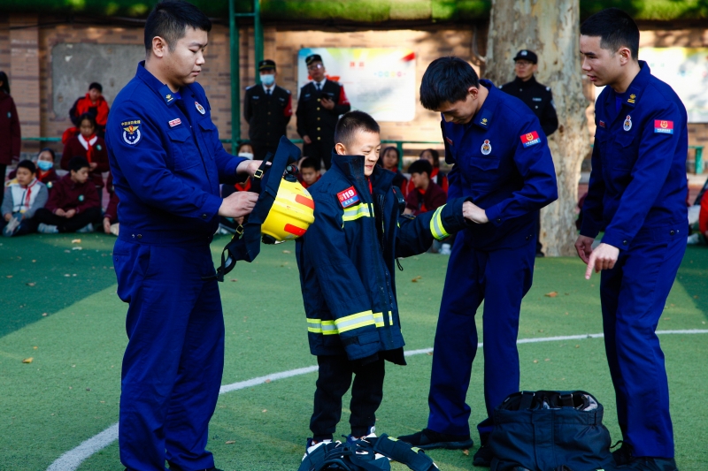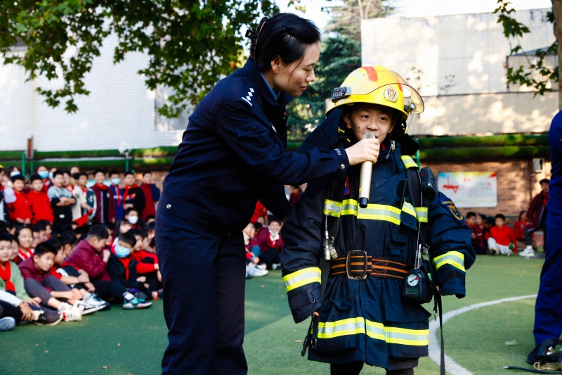 11月7日下午3時,鄭州市金水區(qū)緯三路小學聯(lián)合經(jīng)八路派出所及金水區(qū)消防大隊經(jīng)五路消防站在學校操場開展了以“預防為主,生命至上”為主題的消防應急疏散演練活動。經(jīng)八路派出所副所長曾夏南和經(jīng)五路消防站消防員共同走進一年級教室,為學生進行了疏散逃生的消防知識指導。曾警官和消防員對如何預防及在火災初期如何正確選擇滅火器、使用滅火器、居家消防安全注意事項、報警要點等進行了講解。孩子們與消防員積極互動、有趣充實。