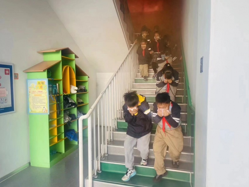 11月8日上午,利用大課間,金水區(qū)鳳凰雙語小學開展了消防應急演練活動。隨著警報的響起,各班正副班主任、樓層指揮人員迅速到班到崗,沉著冷靜地指揮組織學生撤離。各班學生在老師們的指揮下,用毛巾、手帕等捂住口鼻,彎著腰,盡量將身體放低,沿著學校指定樓梯口、疏散路線快速前進,緊急撤離教學樓,安全、快速、有序地撤離到學校操場安全區(qū)域。各班正副班主任清點并匯報人數(shù),全校2000余名師生全部安全疏散完畢,從警報響起到最后一個班級到達安全區(qū)域,共用時四分五十六秒,演練活動取得圓滿成功。