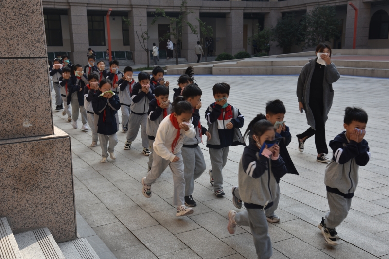 金水區(qū)實驗小學教育集團提前規(guī)劃消防應急疏散演練。演練前,學校進行了精心策劃和嚴密組織,成立了疏散演練領導和現(xiàn)場指揮小組,做到分工明確,責任到人。班主任老師進行了集體教育活動,讓學生了解消防演練的基本知識。隨著警報的響起,學生迅速從座位上站起,在老師的指揮下,拿著毛巾捂住口鼻,放低身體,做好有序撤離的準備。同時有老師廣播說到:“老師們、同學們請注意,學校現(xiàn)在發(fā)生緊急情況,為確保安全,請全校師生按照學校安排的行走路線有序迅速地撤離到指定地點,請大家務必聽從指揮,不要慌亂!”整個撤離過程中,各崗位負責人在指定崗位認真負責,協(xié)助并指導學生有序快速疏散;各班主任帶領學生根據(jù)演練方案中規(guī)定的路線快速疏散,學生彎著腰、用濕毛巾捂住口鼻,沿著指定路徑快速、有序地撤離到操場上的安全地帶。到達安全地點后,各班班主任迅速清點人數(shù),確保不漏一人,保證全員安全脫險,高標準達成疏散效果。