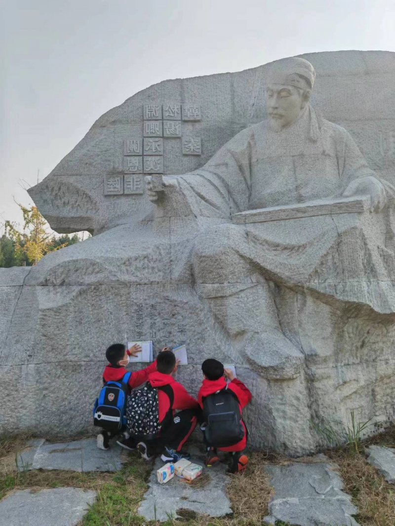 同學(xué)們來到炎黃廣場(chǎng),瞻仰炎黃二帝像,領(lǐng)悟炎黃二帝為中華民族的文化起源所作出的重大貢獻(xiàn)。117位中華歷史名人像是炎黃廣場(chǎng)的重要組成部分,像兩條巨龍一樣位于廣場(chǎng)東西兩側(cè)。為了讓學(xué)生們了解中華五千年的文化、緬懷先祖,銘記中華民族杰出的先人創(chuàng)下的豐功偉績(jī),孩子們進(jìn)行了尋找名人的游戲。
