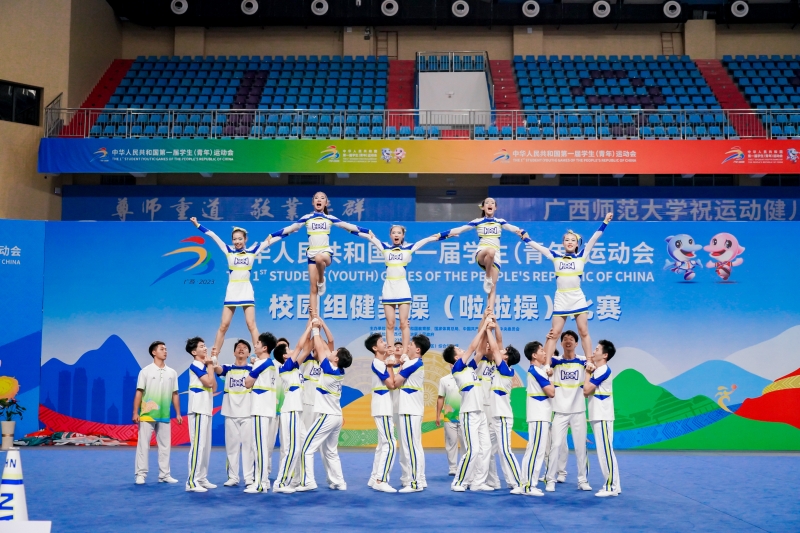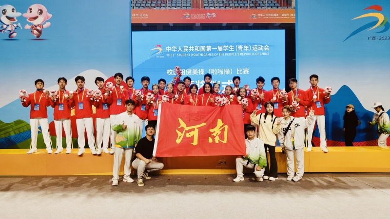 中華人民共和國第一屆學(xué)生(青年)運動會校園組健美操(啦啦操)項目預(yù)賽、決賽于11月8日至11日在桂林廣西師范大學(xué)雁山校區(qū)舉行,全國各省區(qū)市代表隊展開激烈角逐。由鄭州市第七十一中學(xué)負(fù)責(zé)牽頭,聯(lián)同鄭州市第十四高級中學(xué)共同組建的河南省啦啦操隊攻堅克難,最終榮獲集體技巧全國亞軍,為河南省代表團貢獻一枚集體項目銀牌。