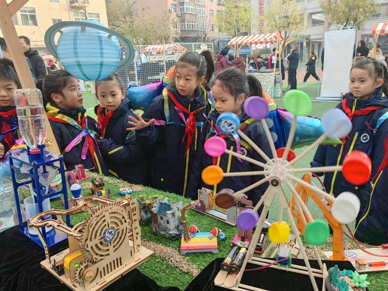 手工制作的天宮空間站模型、太陽(yáng)能衛(wèi)星模型、“可以撈一碗月光”的月球燈、裸眼3D風(fēng)扇全息投影裝置、智能電子編鐘……11月15日上午,鄭州市金水區(qū)經(jīng)三路小學(xué)校園廣場(chǎng)上熱鬧非凡,來(lái)自全區(qū)中小學(xué)校的“小科學(xué)家”們競(jìng)相向參觀者介紹他們“研發(fā)”的科技作品。