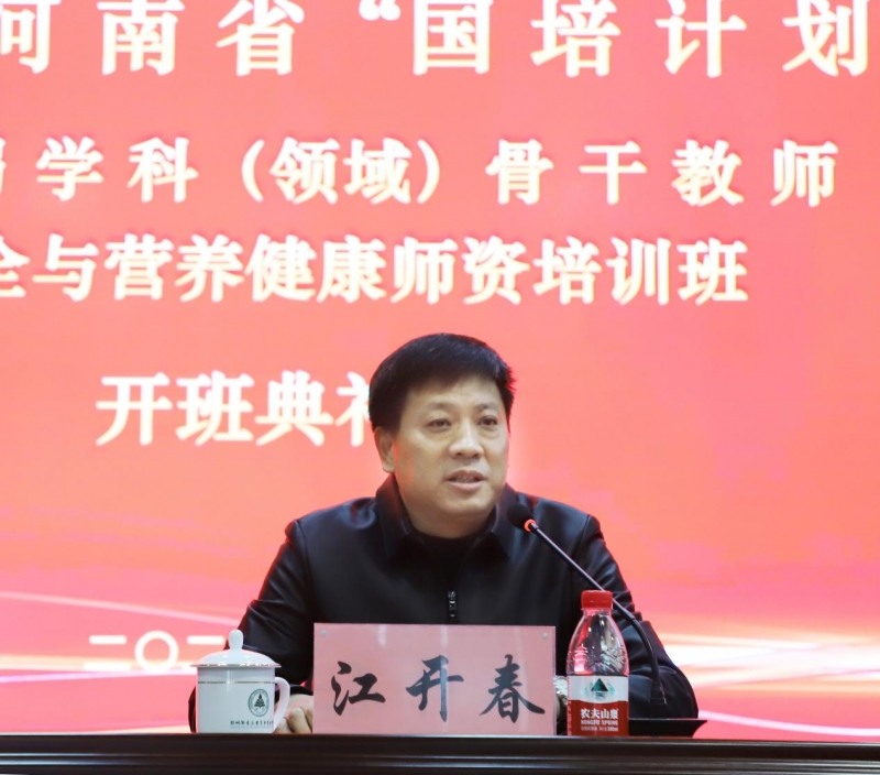 11月13日至17日,2023年“國培計(jì)劃”《食品安全與營養(yǎng)健康師資培訓(xùn)班》在鄭州澍青醫(yī)專成功舉辦。此次培訓(xùn)由河南省教育廳主辦,鄭州澍青醫(yī)學(xué)高等專科學(xué)校承辦,組織全省各地市幼兒園、中小學(xué)教師共計(jì)100名代表學(xué)員集中開展食品安全與營養(yǎng)健康師資培訓(xùn)。鄭州澍青醫(yī)專副校長江開春、公共衛(wèi)生健康系主任呂全軍、公共科學(xué)黨總支副書記楊平、培訓(xùn)處副處長鄭永奇出席開班儀式。儀式由鄭永奇主持。